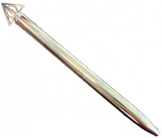 S touto stylovou kovovou propiskou, jejíž konec zdobí symbol Relikvie smrti z Harry Pottera, se bude dobře psát všem kouzelnicím, mágům i čarodějům. Propiska píše černým inkoustem.