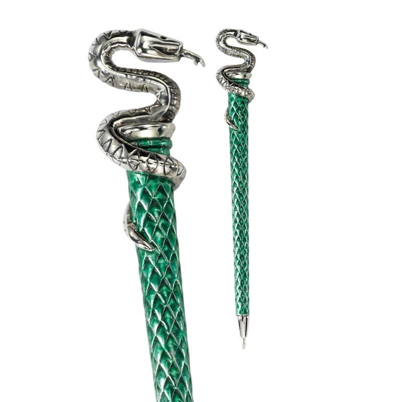 Sběratelské pero s motivem bradavické koleje - Zmijozel. Povrch je pokrytý stříbrem. Rozměr: cca 15 cm číst celé