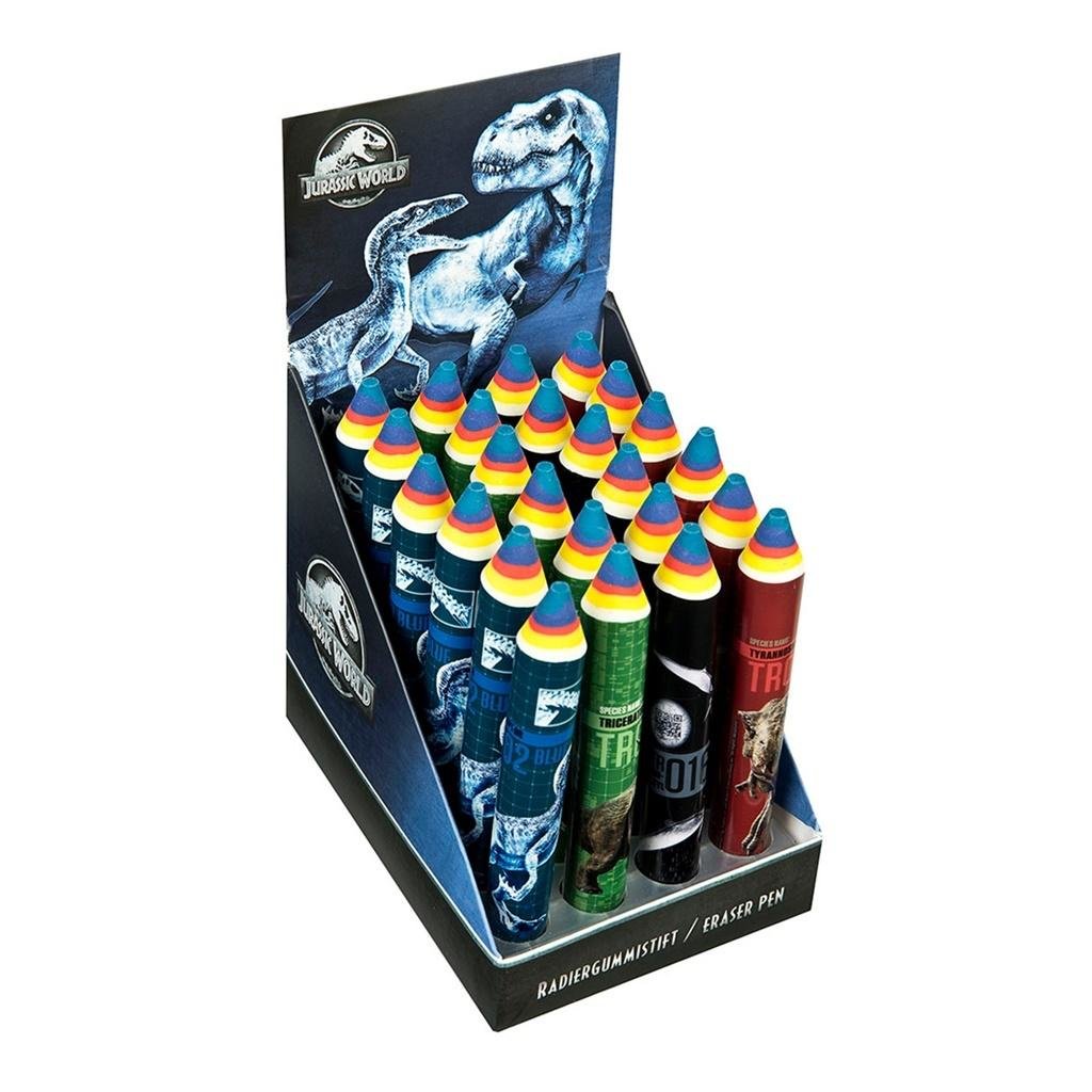 Gumka w kształcie Długopisu, Dinozaury, Jurassic World Zabawna gumka do ścierania w praktycznym kształcie ołówka. Kolejno ścierane warstwy w różnych kolorach.