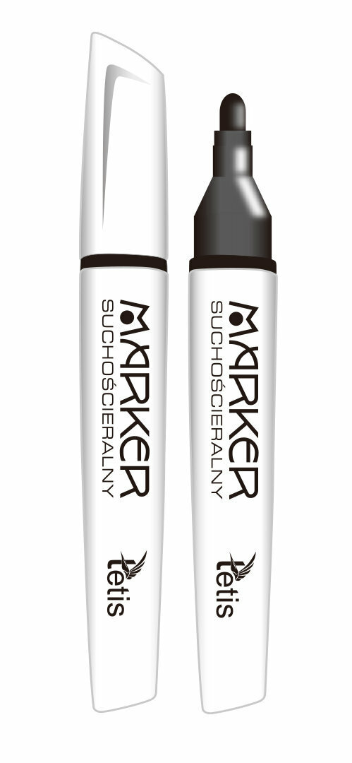 Suchościeralny, czarny marker od firmy TETIS. Jest szybkoschnący i łatwy do starcia z większości powierzchni. Tusz jest nietoksyczny, wykonany na bazie alkoholu. Dzięki trójkątnemu, ergonomicznemu wyprofilowaniu dobrze trzyma się go w dłoni, co zapewnia komfort pisania. Pisak posiada zatyczkę.Cena za 1 sztukę (1 marker).Grubość linii pisania: 3mmKońcówka: stożkowaOpakowanie zbiorcze: pudełeczko z nadrukiemWymiary opakowania zbiorczego: 11x4x14cm