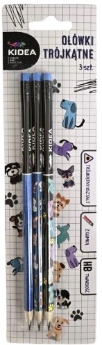 OŁÓWKI TRÓJKĄTNE Z NADRUKIEM 3 SZT. PIES KIDEA