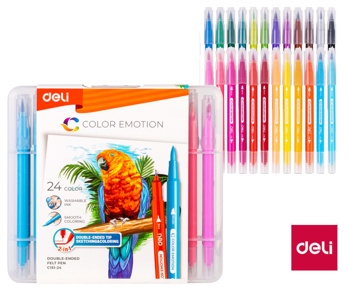 Fix oboustranný DELI štětečkový + liner 24 barev Color Emotion EC151-24