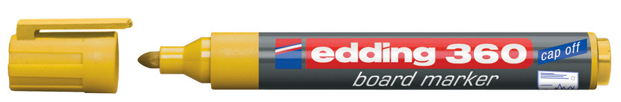 Objevte spolehlivost a světlost barvy v jednom popisovači! Popisovač EDDING 360 v zářivě žluté barvě je ideální volbou pro všechny, kteří chtějí jasné a trvanlivé značení na bílé tabule a další hladké povrchy.