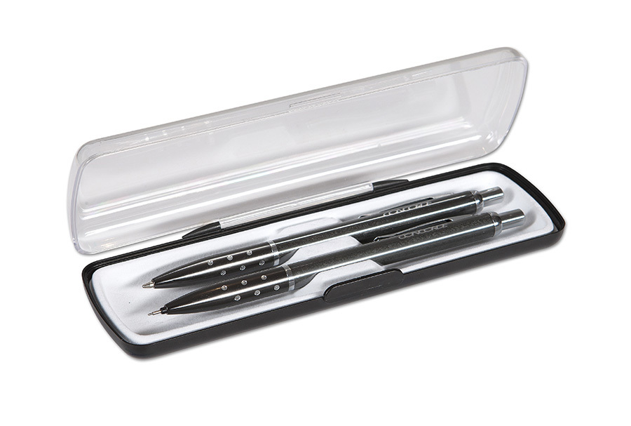 Dárková sada v plastové krabičce, kuličkové pero a mechanická tužka 0,5mm, lesklé tělo z eloxovaného hliníku, pochromované doplňky, plastová náplň A3 modrá.
