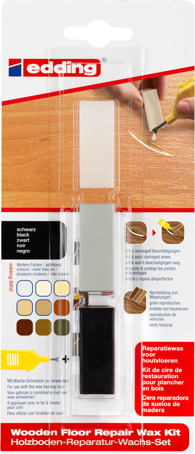 EDDING 8902 vosk na opravu dřevěné podlahy v elegantní černé barvě je ideálním pomocníkem pro všechny, kdo chtějí zakrýt škrábance, oděrky či jiné drobné vady na dřevěných površích. Nechte svou podlahu znovu vypadat jako nová bez náročných oprav a pracných úprav.