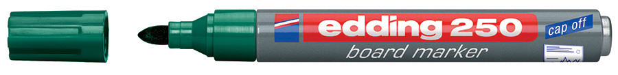 Popisovač na bílou tabuli a flipchart "250", zelená, 1-3mm, kuželový hrot, EDDING