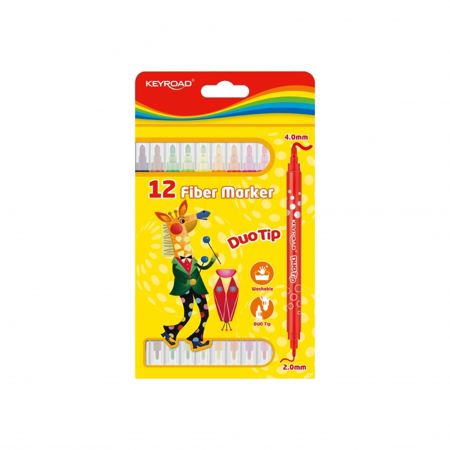 Sada vypratelných popisovačů v zářivých barvách. Hroty jsou na jedné straně popisovače slabé a na druhé silné, celkem 12 barev. Ventilační uzávěr pro bezpečnější použití. Tělo s bílým potiskem. Hroty 2 a 4mm.