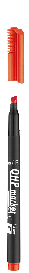 Vhodný pro popis průsvitných folií, skla, umělé hmoty apod. Vysoce neprůhledný inkoust s ostrými obrysy. Odolný proti vodě, smazatelný pouze pomocí lihu. Šíře stopy 1-3mm (C). Zkosený hrot.