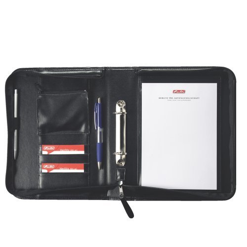 černá koženka, dvoukroužková mechanika, blok A5, přihrádky na kreditní karty, kapsa na zip, poutka na psací potřeby číst celé