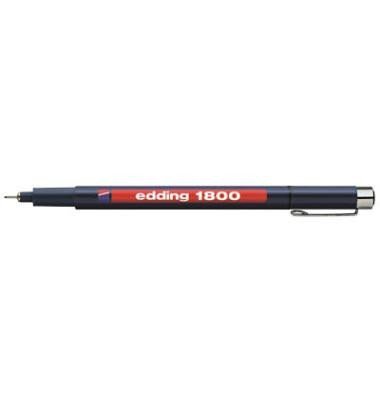Popisovač EDDING 1800, černý s šíří hrotu 0,1 mm má velmi jemný hrot pro vynikající výsledky. Pro psaní a skicování, např. pro práci s technickou dokumentací. Použijte ho ale i pro Vaše tvoření ve volném čase. Pigmentový inkoust, který vyniká zejména pro svou stálobarevnost a vysokou trvanlivost. Odolný vůči rozmazání a vodě. Díky speciálnímu inkoustu nedochází k prosakování skrz papír. Rychleschnoucí a neutrální vůně. Má plastový kulatý hrot s kovovým rámečkem. Víčko fixu má klip pro praktické zachycení, např. k oděvu nebo notesu.