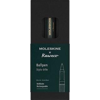 Tato propisovací tužka vznikla ve spolupráci dvou legendárních značek: Moleskine a Kaweco. Propisovací tužky mají dnes již ikonický osmihranný design, ale vylepšený o ergonomickou rukojeť pro ještě snadnější a pohodlnější psaní. K výběru jsou ve čtyřech barvách ?- černé, červené, zelené a modré. Propisovací tužka je standardně dodávána s vyměnitelnou modrou náplní.