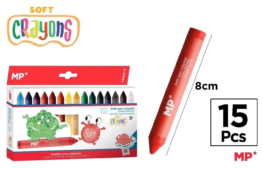 Kredki woskowe miękkie 15 kol. 15szt,opakowanie MP číst celé