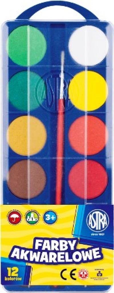 Farby Akwarelowe fi30mm 12 kolorów ASTRA