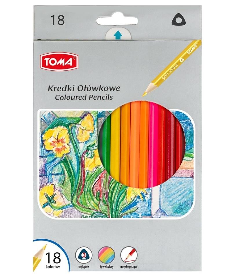 Kredki ołówkowe trójkątne 18 kolorów TOMA
