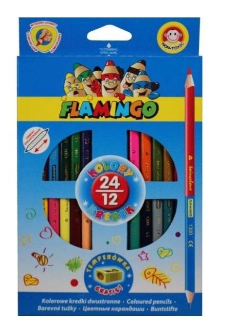 Zestaw 12 dwustronnych kredek ołówkowych doskonałych zarówno dla ucznia jak i przedszkolaka. 12 kredek daje aż 24 kolory! Drewniany, trójkątny korpus nie męczy dłoni dziecka. Dzięki intensywnym, żywym i nieblaknącym kolorom, doskonale nadają się do rysowania i kolorowania. Wysokiej jakości, trwałe grafity umożliwiają wielokrotne i łatwe ostrzenie. Nietoksyczne, idealne dla każdego dziecka powyżej 3 roku życia. Długość kredek: 17.5 cm. Średnica kredek: 7 mm.