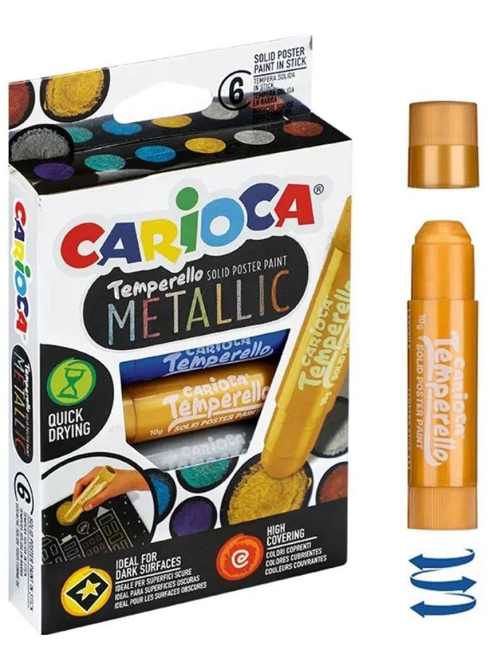 Objevte kouzlo malování na tmavé povrchy s kovovými barvami v tyčince Temporello od CARIOCA! Tyto metalické barvy přinášejí kreativitu a lesk do každého vašeho projektu, ať už jde o umění, školní práce nebo dekorace.