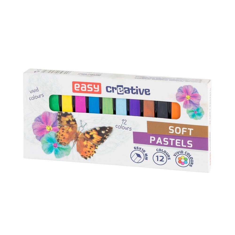 Suche pastele EASY to 12 kolorowych sztyftów służących do rysowania i rozcierania. Kształt i konsystencja pasteli pozwala na ich precyzyjne nakładanie.