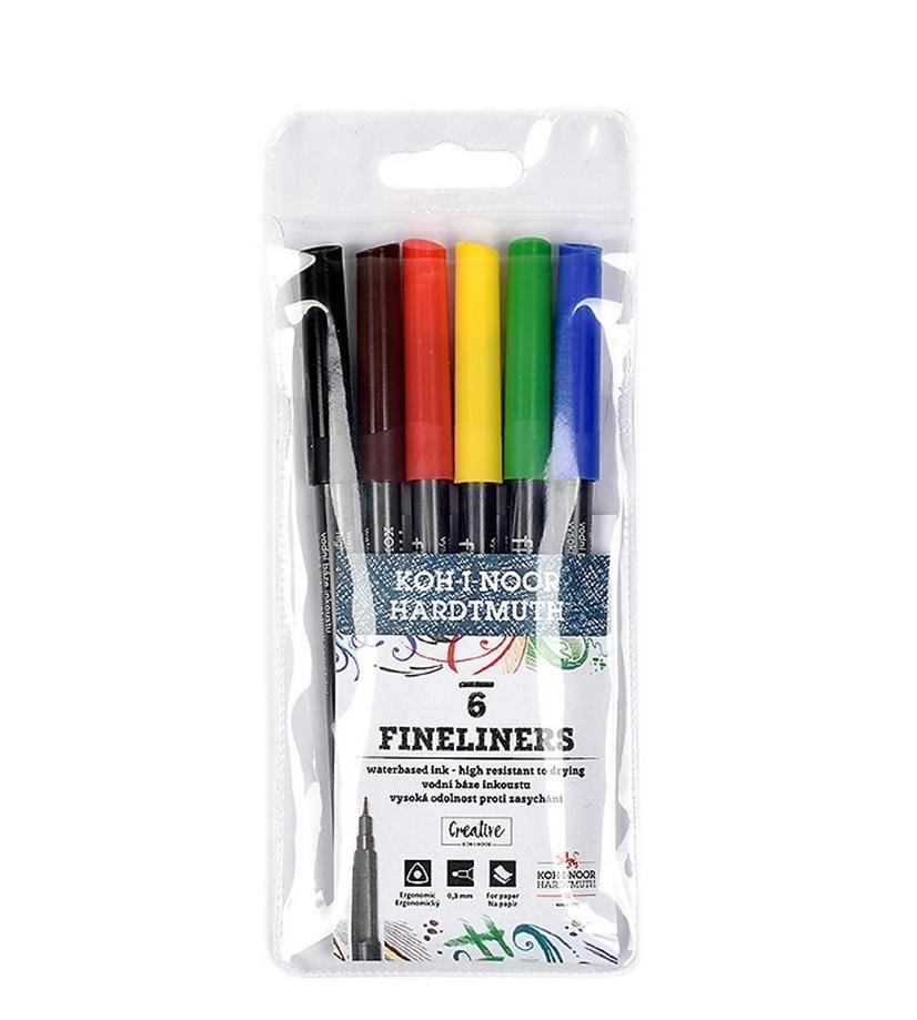 Cienkopisy przeznaczone głównie do pisania, szkicowania i rysowania na papierze. Zestaw 6 kolorów. Ze względu na ergonomiczny, trójboczny kształt są wygodne w użytkowaniu. Zawierają tusz na bazie wody, są spieralne z większości tkanin. Posiadają końcówkę o grubości 0,3mm, która dzięki specjalnej technologii tuszu nie zasycha przez dłuższy czas bez skuwki. Świetnie sprawdza się przy wymagających precyzji zadaniach, jako narzędzie do ozdabiania tekstu oraz robienia notatek. Zostały wyprodukowane zgodnie z europejskimi normami bezpieczeństwa na terenie Unii Europejskiej.