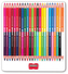 Komplet 24 sztuk kredek ołówkowych dwustronnych w trójkątnej obudowie. Zestaw zawiera 48 kolory w tym kredkę złotą i srebrną. Grafit o średnicy 3 mm i zwiększonej odporności na złamanie. Nowoczesna formuła pigmentów dająca żywe, niegasnące kolory. Obudowa wykonana z najwyższej jakości jasnego drewna lipowego, łatwego w temperowaniu. Nadruk na trzech płaszczyznach, końcówki kredek lakierowane metodą zanurzania. Foliowane, trwałe pudełko z tacką na kredki w środku. Temperówka w zestawie gratis. Nietoksyczne, zgodne z normą EN71.