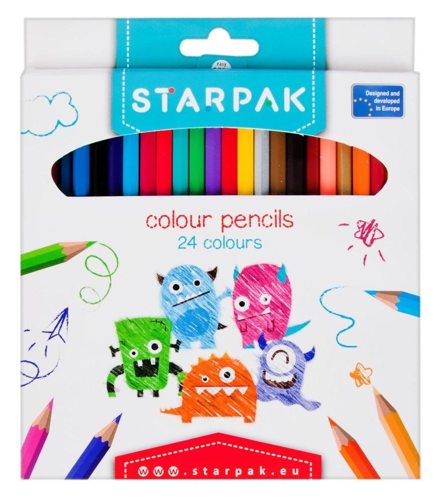 Komplet 24 kredek w kartonowym pudełku zdobionym motywem w potworki. Wysoka jakość rysików. číst celé