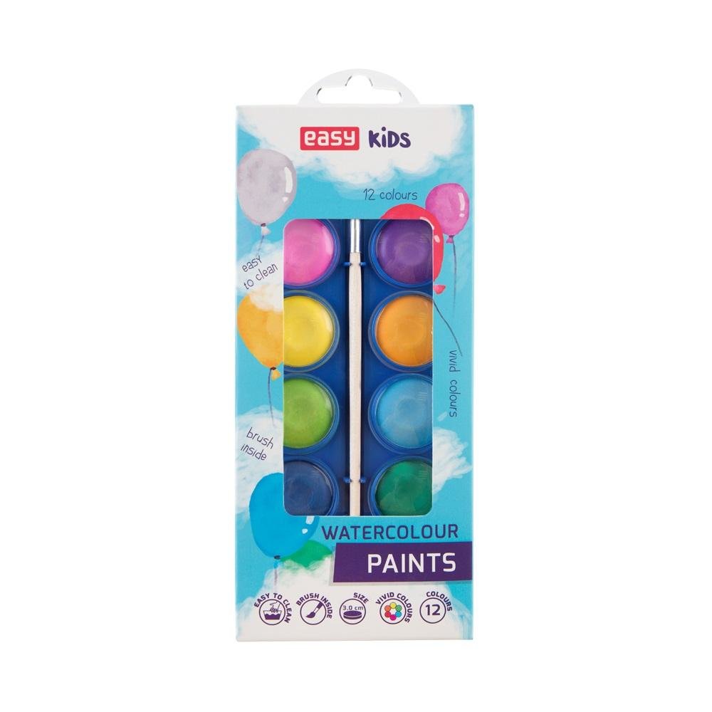 Zestaw farb akwarelowych. Porcje fraby umieszczone zostały na wygodnej, prostokątnej paletce. W zestawie pędzelek.Parametry:- 12 kolorów,- poręczne etui,- w zestawie pędzelek.