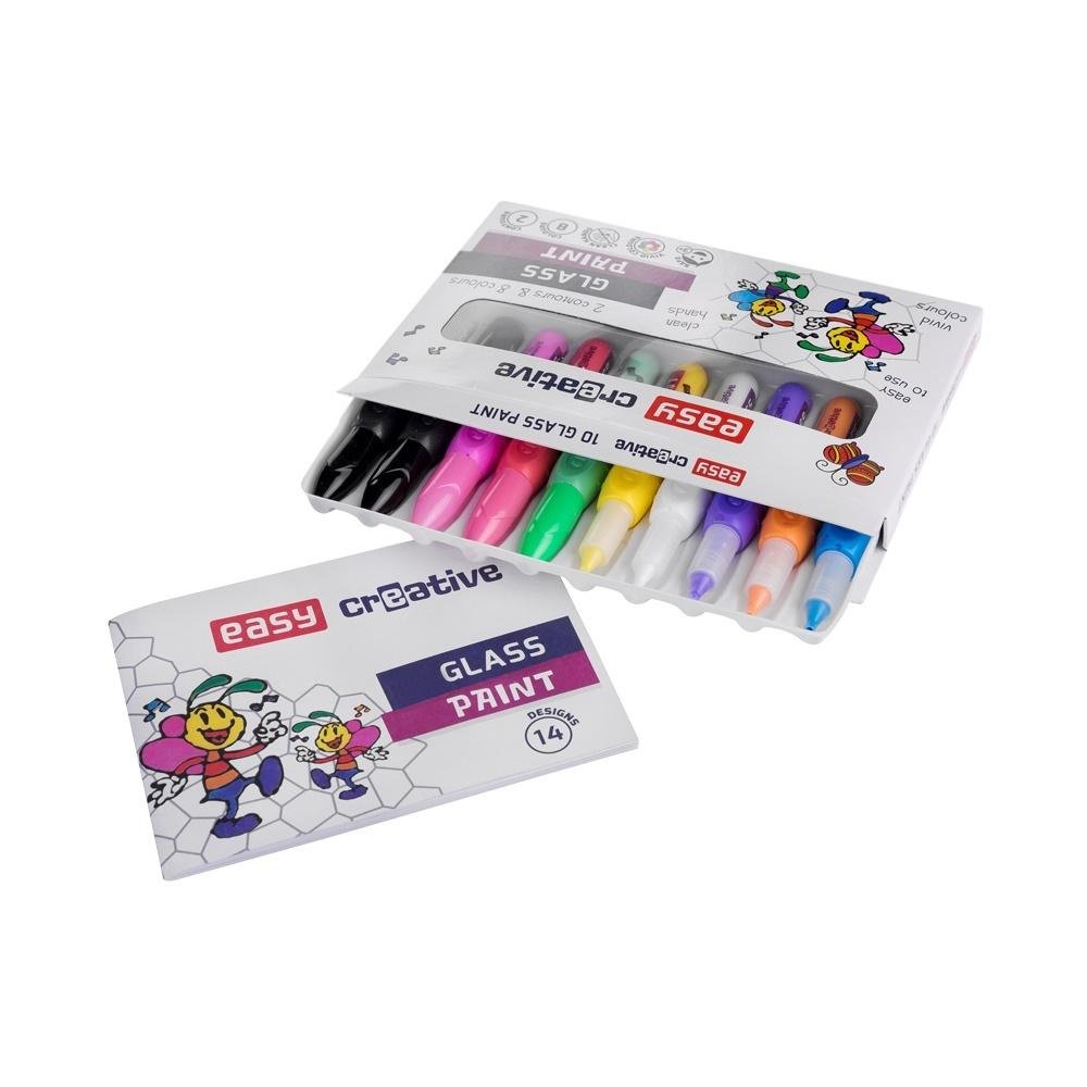 Wraz z farbami dostarczana jest książka z 14 wzorami oraz 2 podkłady foliowe. Wprowadzą one w kolorowy świat witraży i staną się inspiracją do tworzenia własnych, autorskich projektów.