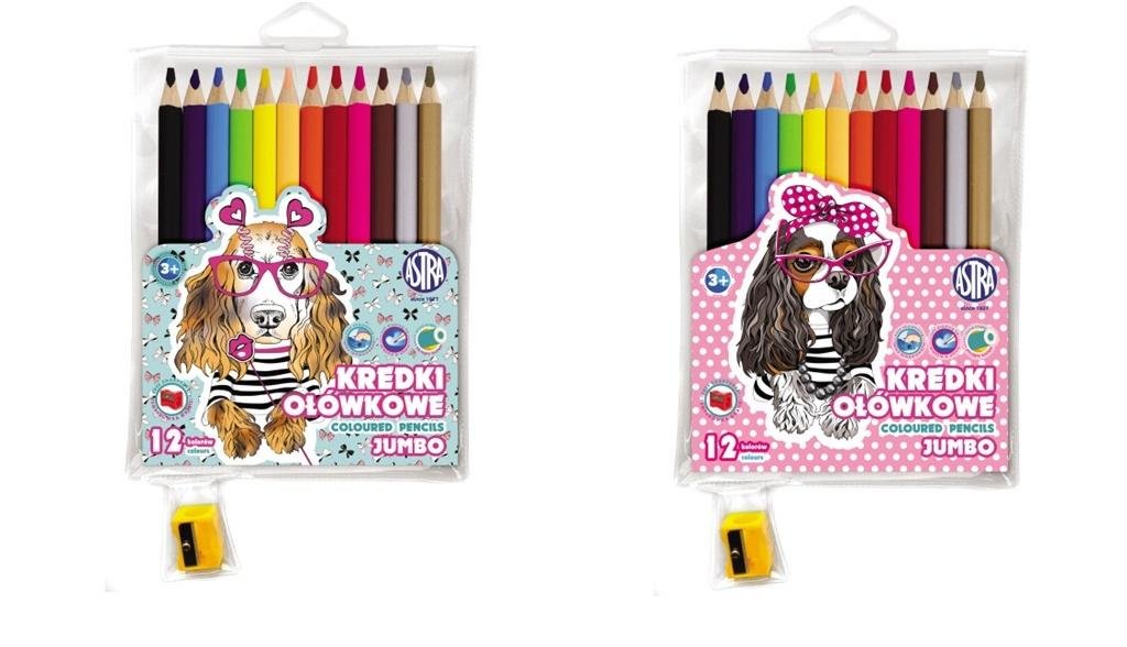 Kredki ołówkowe Pieski 12 kolorów + temperówka