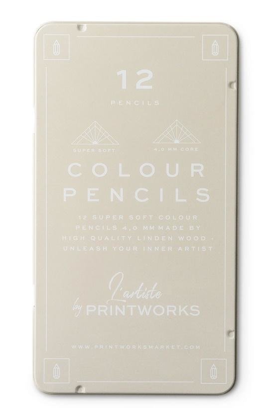 Zestaw 12 starannie dobranych kredek klasycznych kolorach i estetycznym metalowym opakowaniu. Zaprojektowane i wyprodukowane przez PRINTWORKS.Dla wszystkich entuzjastów kolorowania i artystów wykonujących własne prace. Dzięki ich miękkim, bardzo grubym rdzeniom stworzysz doskonałe rysunki....