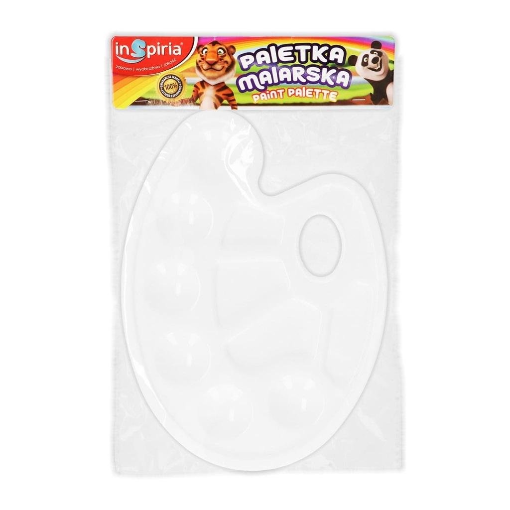 - kolor biały- wykonana z wysokiej jakości plastiku- posiada otwór na palec, co ułatwia jej trzymanie w czasie pracy- paletka posiada 6 mniejszych i 4 większe otwory na farby