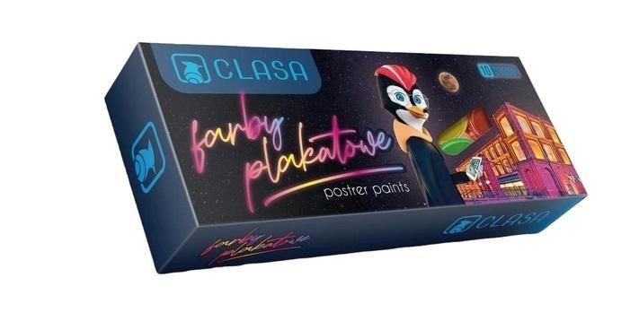 - Farby plakatowe CLASA to wysokiej jakości farby wodne, dobrze kryjące, o czystych i intensywnych barwach.