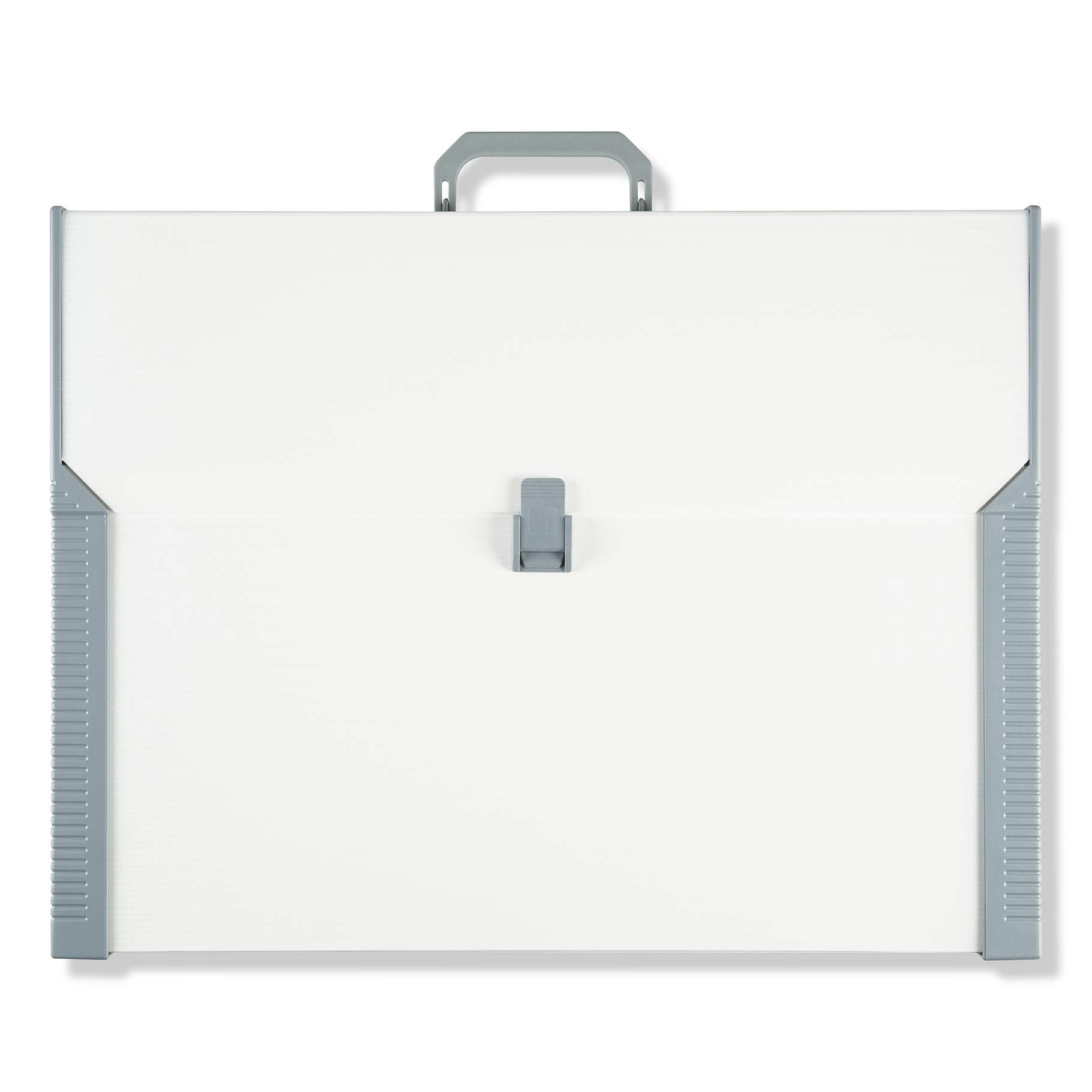 Kufřík Aristo na rýsovací prkno formátu A3 je vyroben z pevného plastu, který zajišťuje dlouhou životnost a spolehlivou ochranu vašeho vybavení. Díky vyztuženým bočním dílům s vodícími lištami dokonale drží tvar a usnadňuje manipulaci s prknem. Barevná kombinace béžové a šedé působí elegantně a profesionálně, zatímco praktická rukojeť umožňuje pohodlný přenos kufříku kamkoli potřebujete.