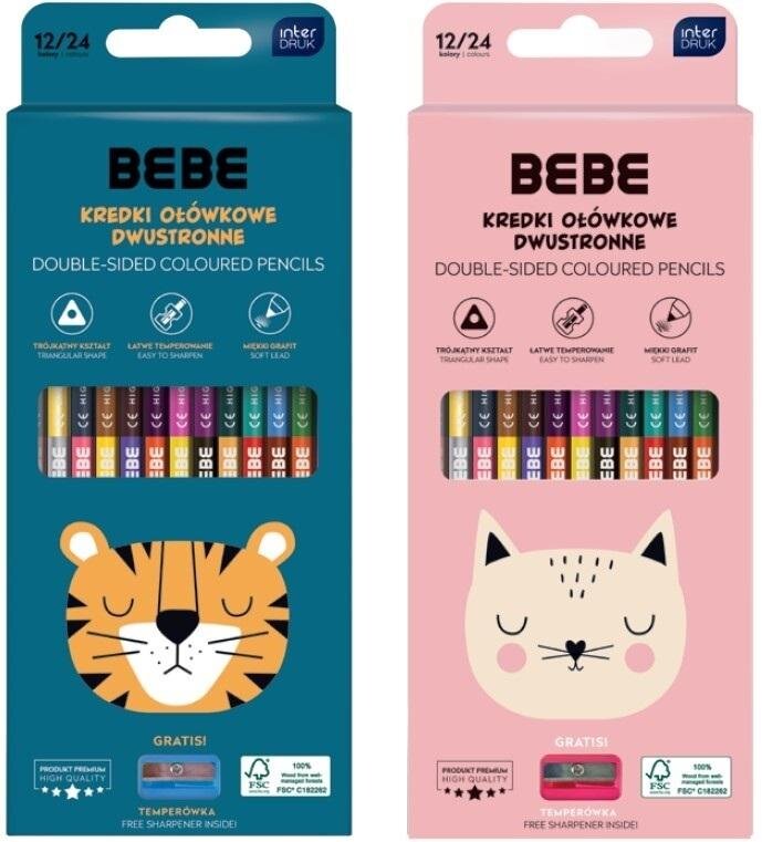 Kredki ołówkowe dwustr. z temp. BB Kids 24 kol mix