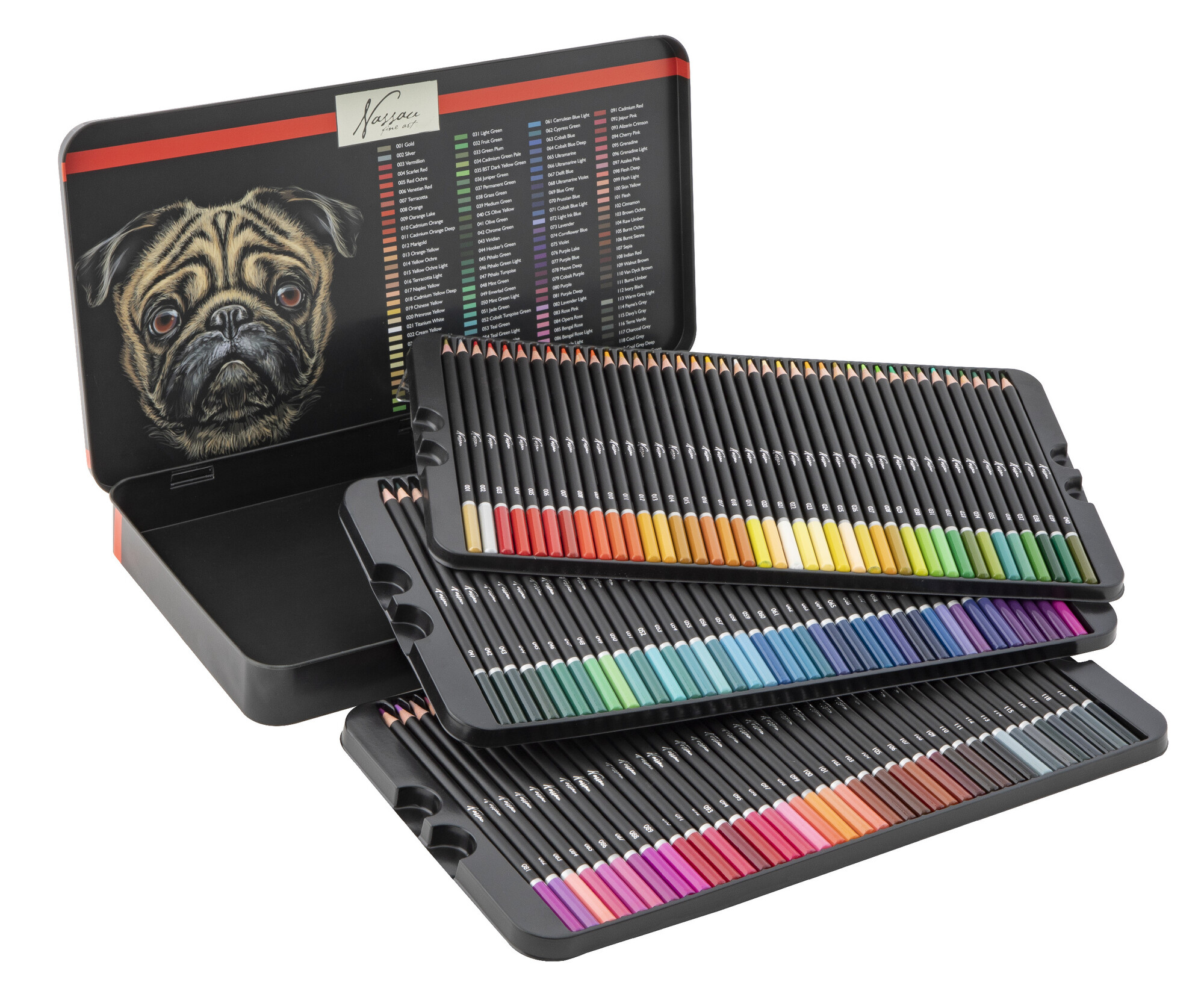 Pastelky jsou uloženy v praktické plechové krabičce, kde jsou očíslované a rozdělené do tří vrstev. Barevné označení usnadňuje rychlou orientaci a výběr přesné barvy. Tento systém vám šetří čas a zvyšuje pohodlí při práci.