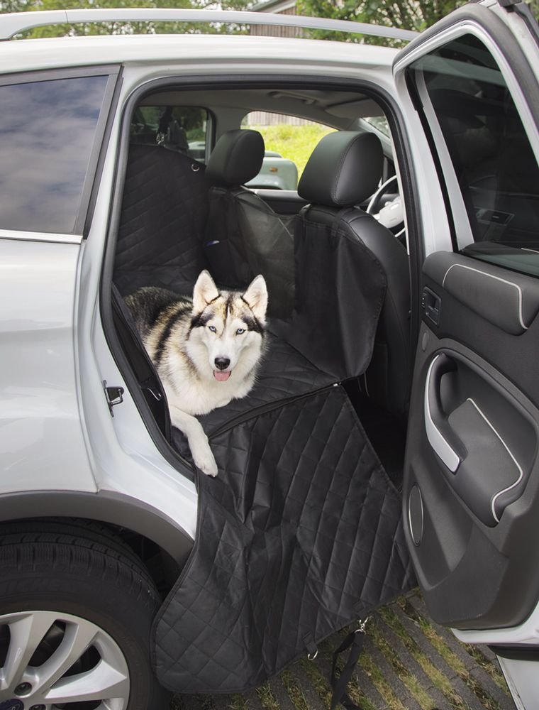 Ochranný potah na zadní sedadla Nobby je odolný, nepromokavý potah, který chrání sedadla od nečistot ze psího kožichu. Potah ponechává přístup k bezpečnostním pásům. Příchytky udržují potah na místě. Jednoduchá montáž a demontáž jakož i čištění jednoduchým otřepáním, nebo v případě potřeby je možné ho vyprat v pračce na jemné - ruční praní 30°C. Vyhovuje tvaru a velikosti zadních sedadel u většiny osobních vozidel. Potah má extra vysoké bočnice pro ochranu dveří (odnímatelné). Zip umožňuje rozdělit potah tak, aby se zadní sedadlo mohlo použít jako sedadlo. Materiál: vodoodpudivá, omyvatelná a odolná proti poškrábání Oxfordská polyesterová tkanina (OXFORD 600D) Barva: černá Potah obashuje kapsy pro ukládání drobných předmětů. Rozměry: 137 x 147 cm