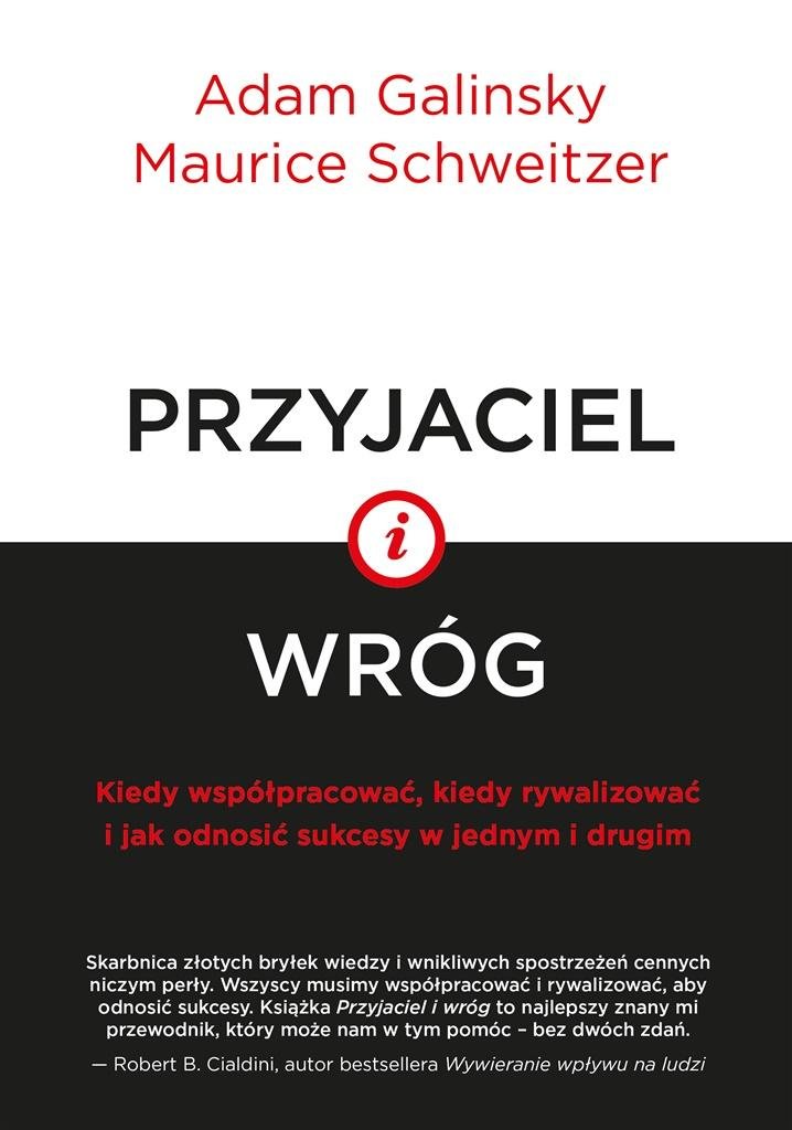 Skarbnica złotych bryłek wiedzy i wnikliwych spostrzeżeń cennych niczym perły. Wszyscy musimy współpracować i rywalizować, aby odnosić sukcesy. Książka Przyjaciel i wróg to najlepszy znany mi przewodnik, który może nam w tym pomóc bez dwóch zdań. Robert B. Cialdini, autor bestsellera Wywieranie wpływu na ludzi Co jest potrzebne do odniesienia sukcesu? To pytanie jest przedmiotem toczącego się od dawna sporu. Niektórzy twierdzą, że ludzie są z natury skłonni do rywalizacji, a dbałość o własny interes jest najlepszym sposobem, w jaki można wyprzedzić konkurentów. Inni uważają, że ludzie są stworzeni do współpracy i że odnoszą największe sukcesy, kiedy współdziałają z bliźnimi. W książce Przyjaciel i wróg Adam Galinsky i Maurice Schweitzer wyjaśniają, dlaczego ten spór nie trafia w sedno sprawy. My, ludzie, nie mamy wrodzonej skłonności do rywalizacji albo do współpracy; ewolucja przygotowała nas do obu tych zachowań. W każdej relacji od współpracowników, przez przyjaciół i współmałżonków, po rodzeństwo jesteśmy równocześnie przyjaciółmi i wrogami. Tylko poprzez nauczenie się, jak osiągnąć i utrzymać równowagę między tymi dwiema siłami, możemy udoskonalić swoje długotrwałe związki i z większym powodzeniem zdobywać to, czego chcemy. Galinsky i Schweitzer opierają się na oryginalnych, nowatorskich badaniach, jakie przeprowadzili w swoich laboratoriach, a także na odkryciach dokonanych na gruncie nauk społecznych i na obrazowych przykładach z życia, aby pokazać, jak można odnosić większe sukcesy w pracy i w życiu prywatnym poprzez zręczne radzenie sobie z napięciem między współpracą a rywalizacją. Oferują cenne spostrzeżenia i wskazówki dotyczące rozmaitych tematów od tego, jak zdobyć i utrzymać władzę, jak zbudować zaufanie i jak je odzyskać, oraz jak łagodzić konflikty i przeciwdziałać uprzedzeniom w miejscu pracy, po to, jak porównywać się z innymi, aby zwiększyć swoją motywację i zapewnić sobie poczucie szczęścia, oraz jak odnosić sukcesy w negocjacjach osiągać własne cele, a jednocześnie dbać o zadowolenie partnerów przy stole negocjacyjnym. Przy okazji autorzy stawiają kilka intrygujących pytań i udzielają na nie zaskakujących odpowiedzi: kiedy nadmiar talentu może przeszkadzać w odniesieniu sukcesu? Dlaczego mniej kompetentne działanie może Ci zapewnić wysoki status i autorytet? Skąd tak naprawdę bierze się duża część różnic między płciami w miejscu pracy? Wreszcie, dlaczego lepiej występować na końcu w programie telewizyjnym Idol i podczas rozmów kwalifikacyjnych, ale warto być pierwszym, który składa ofertę w trakcie negocjowania zakupu nowego samochodu? Najlepsze wyniki osiągamy wtedy, gdy zachowujemy optymalną równowagę między współpracą a rywalizacją. Ta książka jest przewodnikiem, który pomoże Ci sprawnie żeglować po świecie społecznym i zawodowym dzięki umiejętności decydowania, kiedy współpracować jako przyjaciel, a kiedy rywalizować jako wróg, i dzięki nauczeniu się, jak radzić sobie lepiej z jednym i drugim.