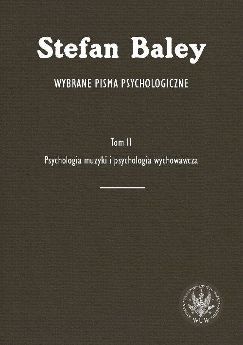 Drugi tom prac wybranych Stefana Baleya dotyczy psychologii muzyki (m.in. lokalizacji dychotycznego słyszenia oraz harmonii dźwięków) i psychologii wychowawczej (m.in. psychologii charakteru oraz badań nad etyką i estetyką dzieci w wieku przedszkolnym). Dwutomowa edycja obejmuje najważniejsze...