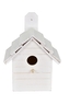 Dekorativní dřevěná ptačí budka na zavěšení.