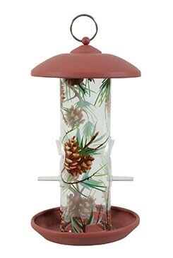 Venkovní krmítko se vzorem šišky s dvojitými bidly pro volně žijící ptactvo.