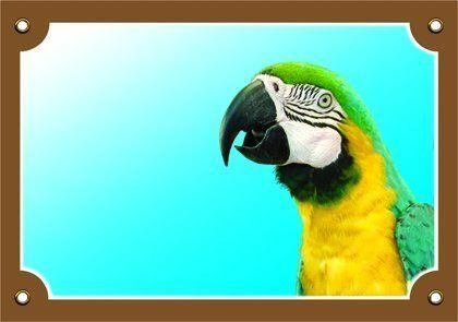 Barevná cedulka Pozor pes, Papoušslepiceek ARA Ararauna