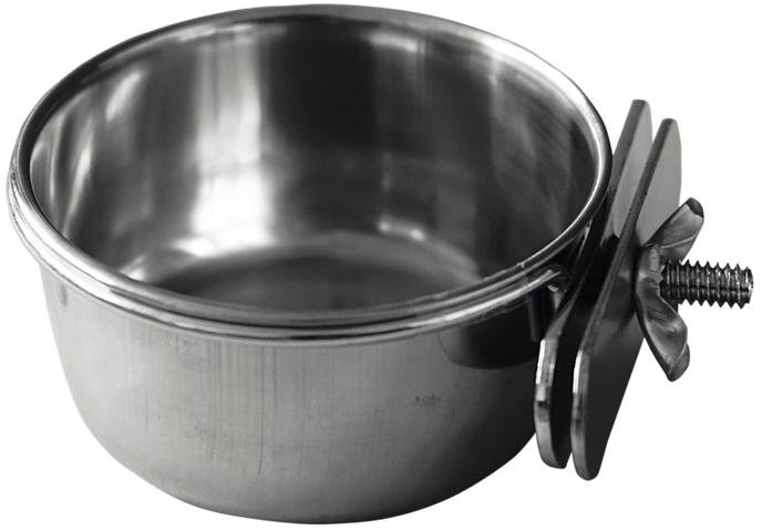 Praktická nerezová miska k zavěšení do klece - ideální doplněk pro pohodlnou a hygienickou péči o vašeho mazlíčka během transportu nebo na výstavách.