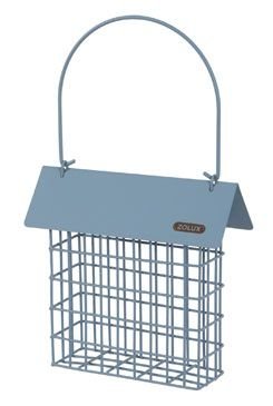 Závěsné kovové krmítko se stříškou, na lojové bloky.