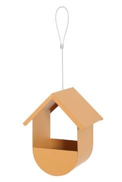 Venkovní kovové krmítko na semínka. Krmítko má stříšku a pevné kovové poutko na zavěšení.
