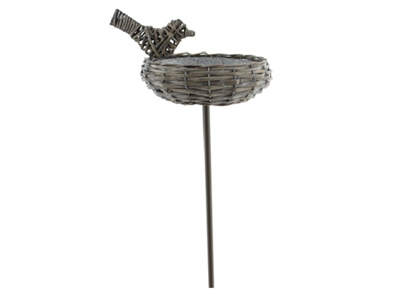 Originální proutěné pítko s dekorativním plechovým ptáčkem - dokonalý doplněk pro vaši zahradu nebo terasu!