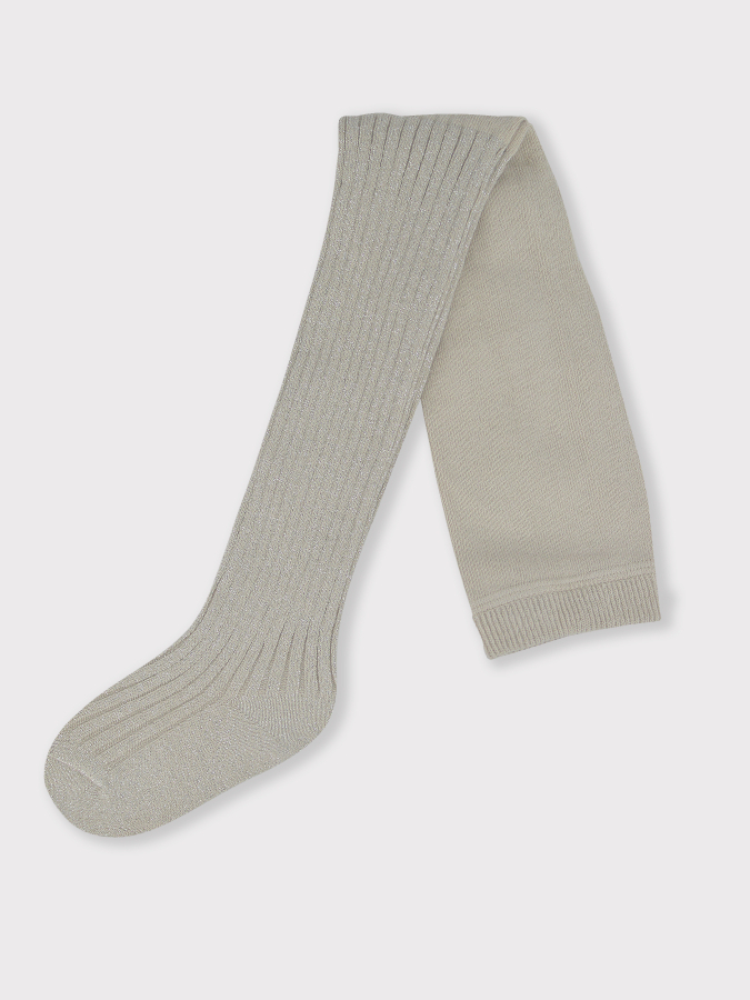 NOVITI RB005-G-02 Rajstopy prążek beż ze srebrnym lureksem 128/134