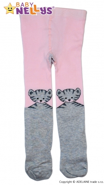Bavlněné punčocháče Baby Nellys ® - KOČIČKA sv.růžová/sv. šedá, vel. 92/98; 92/98 (18-36m)