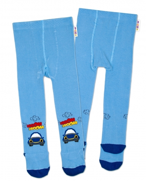 Baby Nellys Bavlněné punčocháče Autíčko - modré, vel. 104/110