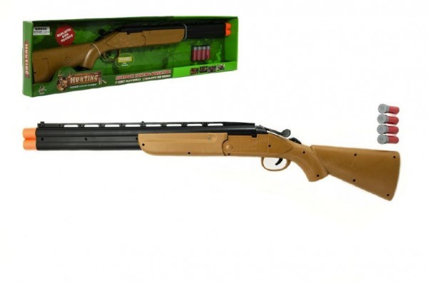 Pistole/Puška/Brokovnice lovecká + 4 náboje plast 77cm na baterie v krabici