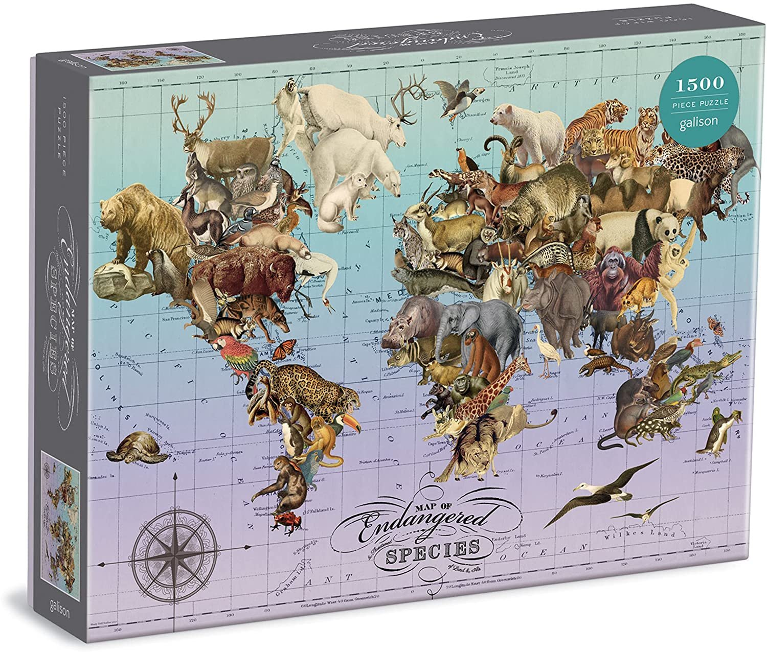 Galison Puzzle Mapa ohrožených druhů 1500 dílků