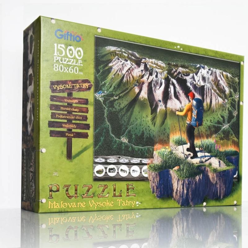 Krásné malované puzzle Mapa Vysokých Tater v dárkové krabičce s plakátem mapy zdarma. číst celé
