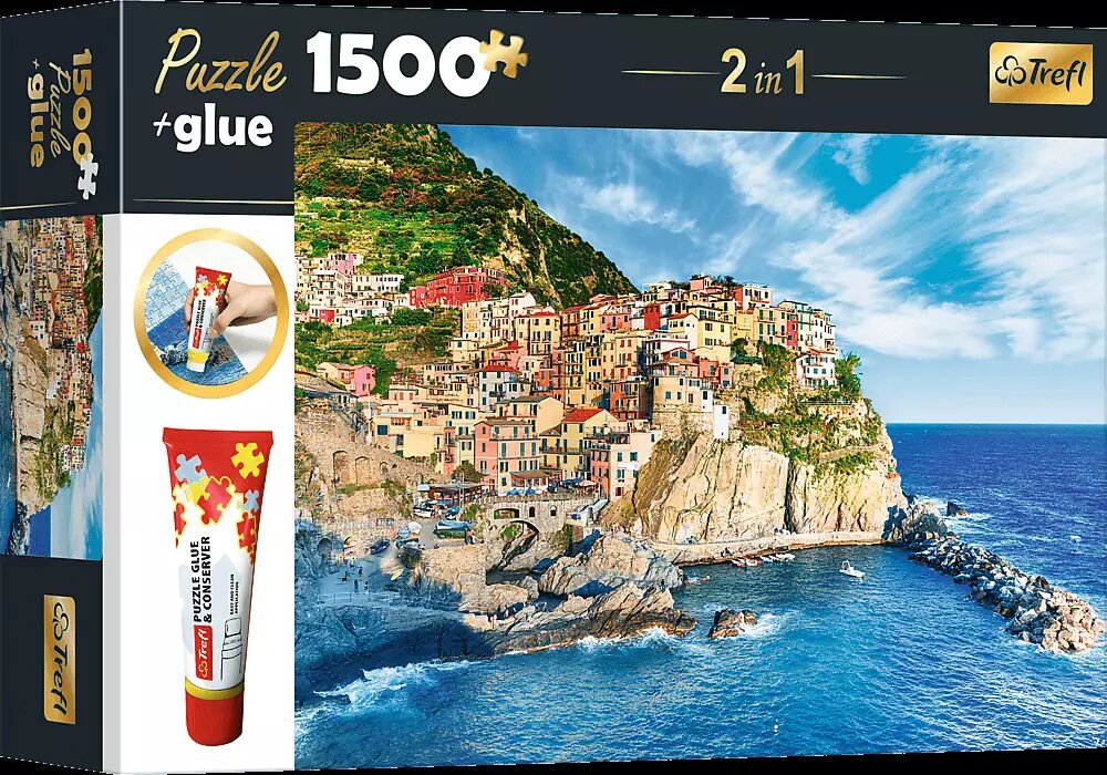 TREFL Sada 2v1 puzzle Manarola, Ligurie, Itálie 1500 dílků s lepidlem